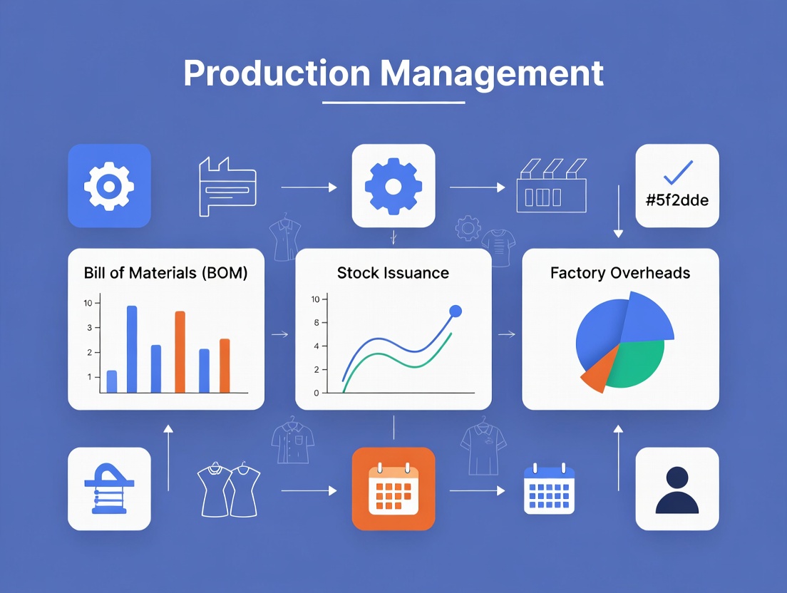 Production in apparel manufacturing involves multiple processes such as cutting, stitching, assembly, finishing, and packaging. Manual tracking leads to wastage, inaccurate costing, and delayed deliveries.
