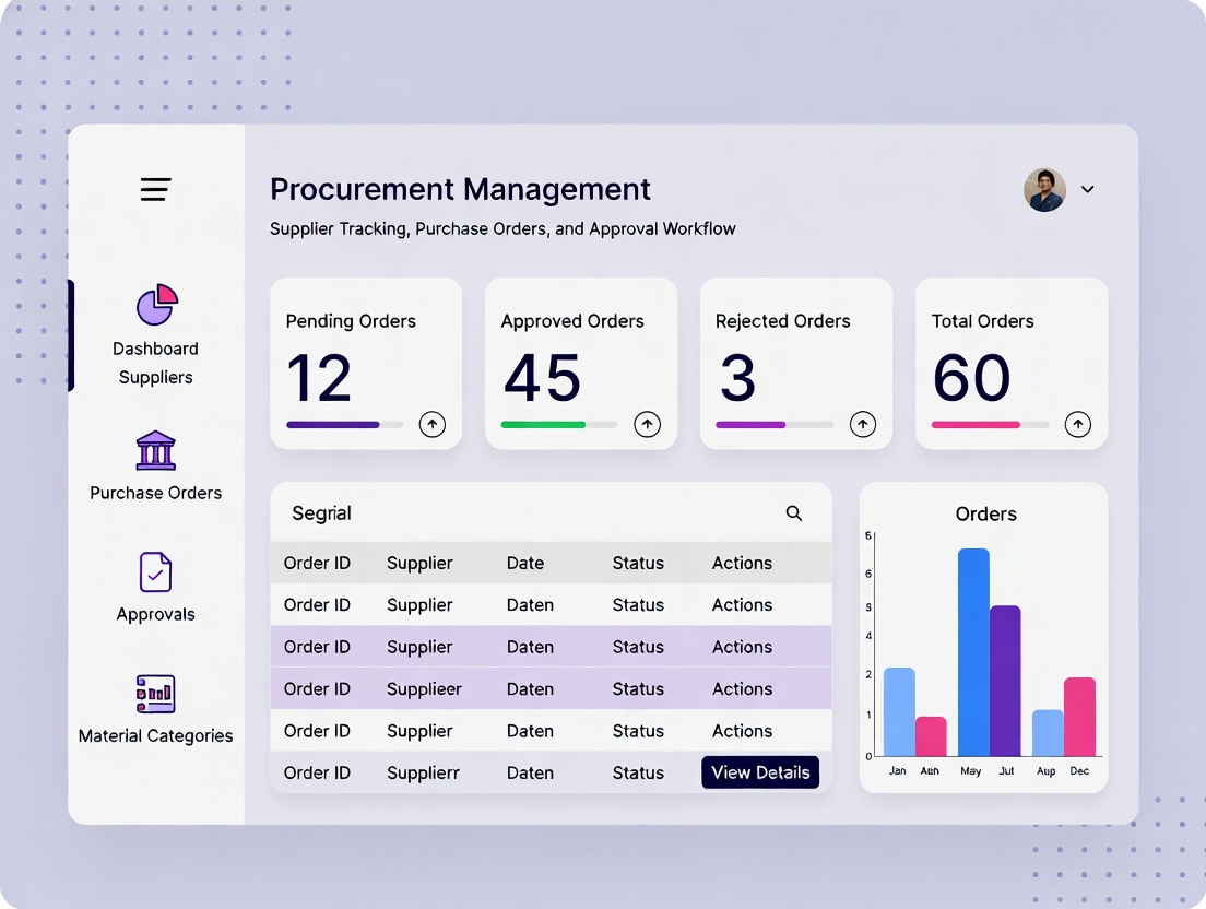 The Inventory Management module provides real-time stock visibility, automated stock control, and accurate warehouse tracking. It minimizes stock shortages and overstocking through intelligent monitoring and reporting tools. This ensures smooth operations, reduced losses, and improved inventory accuracy.