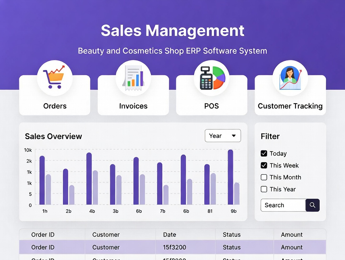 Our Sales Management module automates the complete sales lifecycle—from quotation to invoicing and customer management. It provides real-time sales insights, revenue tracking, and performance analytics. This helps businesses accelerate growth, improve customer relationships, and maximize profitability.