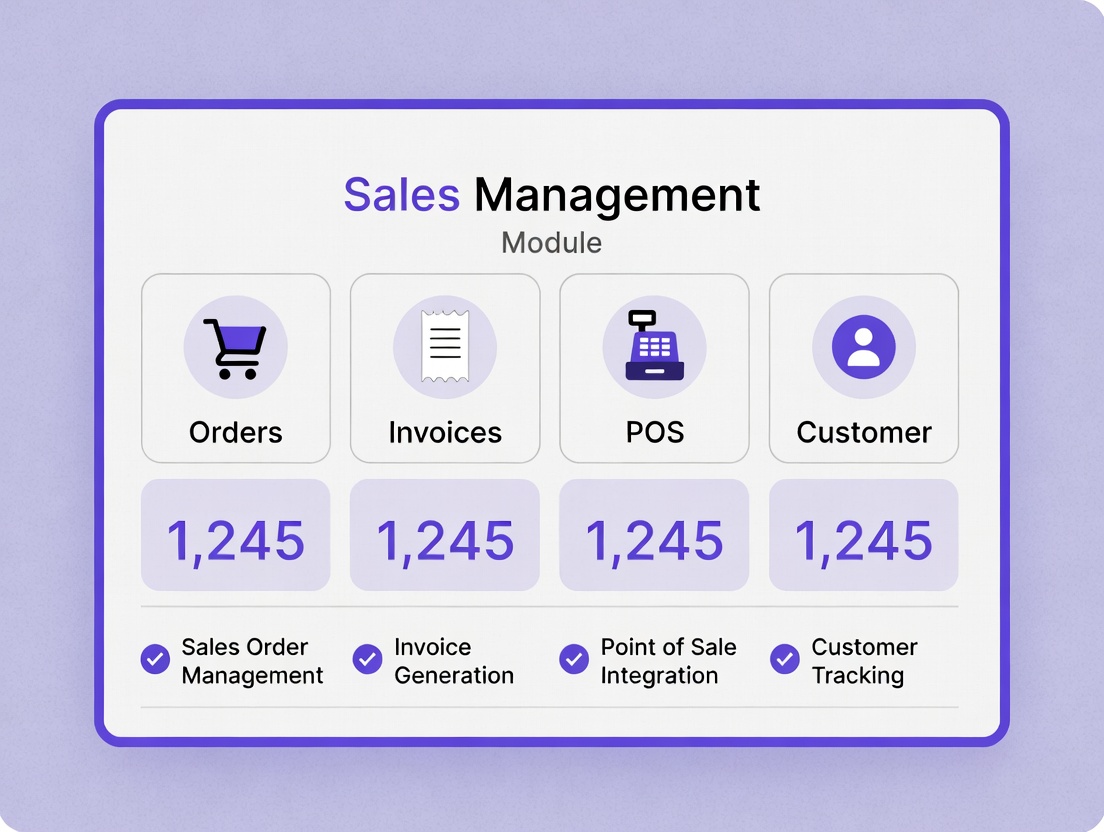 Boutiques experience high-volume sales during weekends, festive seasons, and new collection launches. Fast billing and customer tracking are essential for smooth operations. This module handles customer registration, quotations, sales orders, invoices, POS billing, and returns efficiently. Sales performance reports help managers monitor revenue, seasonal trends, and staff productivity.