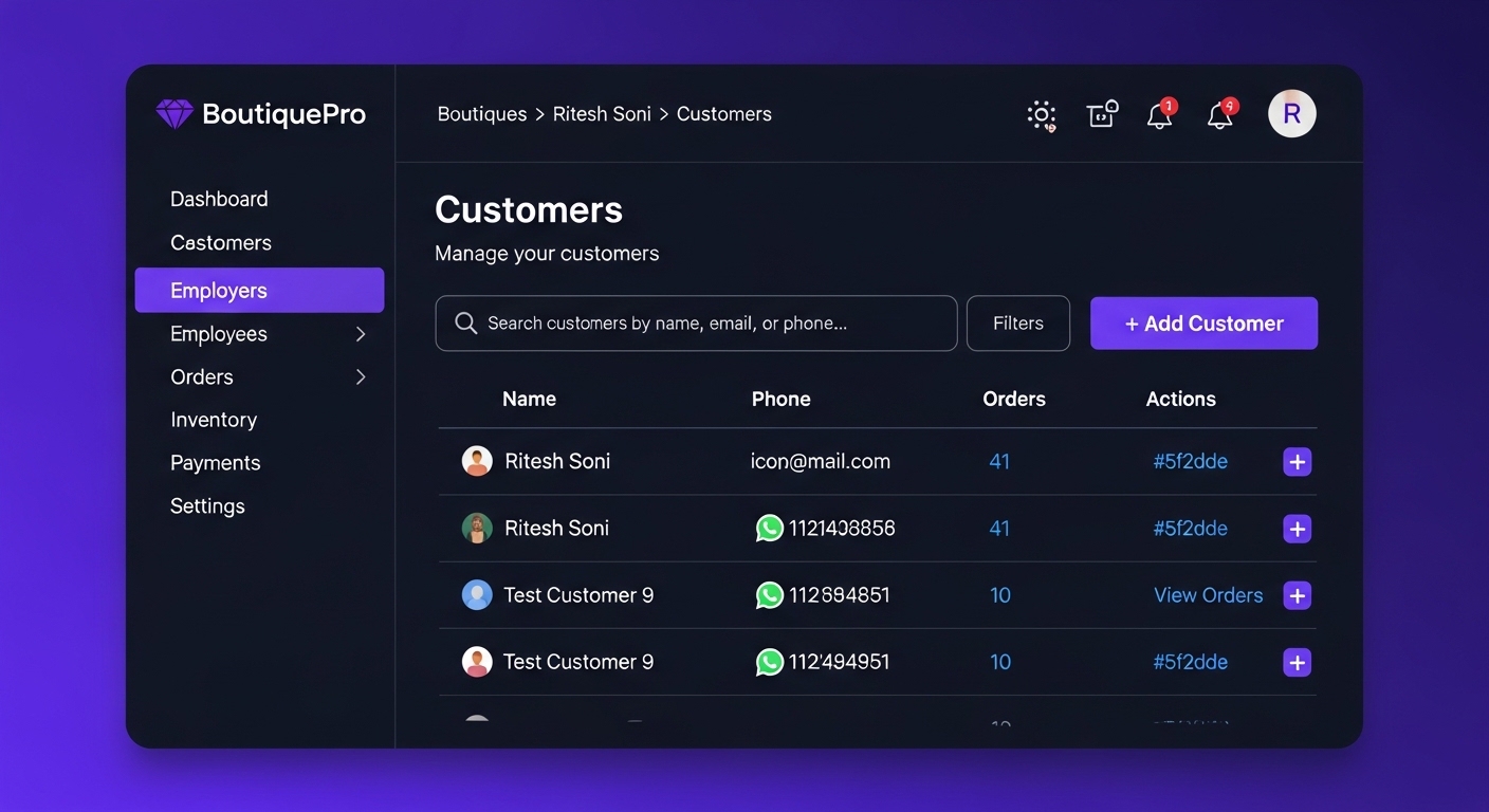 Boutiques often deal with multiple brands, seasonal collections, size and color variations, and imported items. Manual procurement can lead to overstocking, stockouts, and delayed deliveries. This module organizes supplier information and manages purchase orders, invoices, and returns efficiently. It tracks pending orders, monitors supplier payments, and helps plan inventory based on demand trends and seasonal collections.