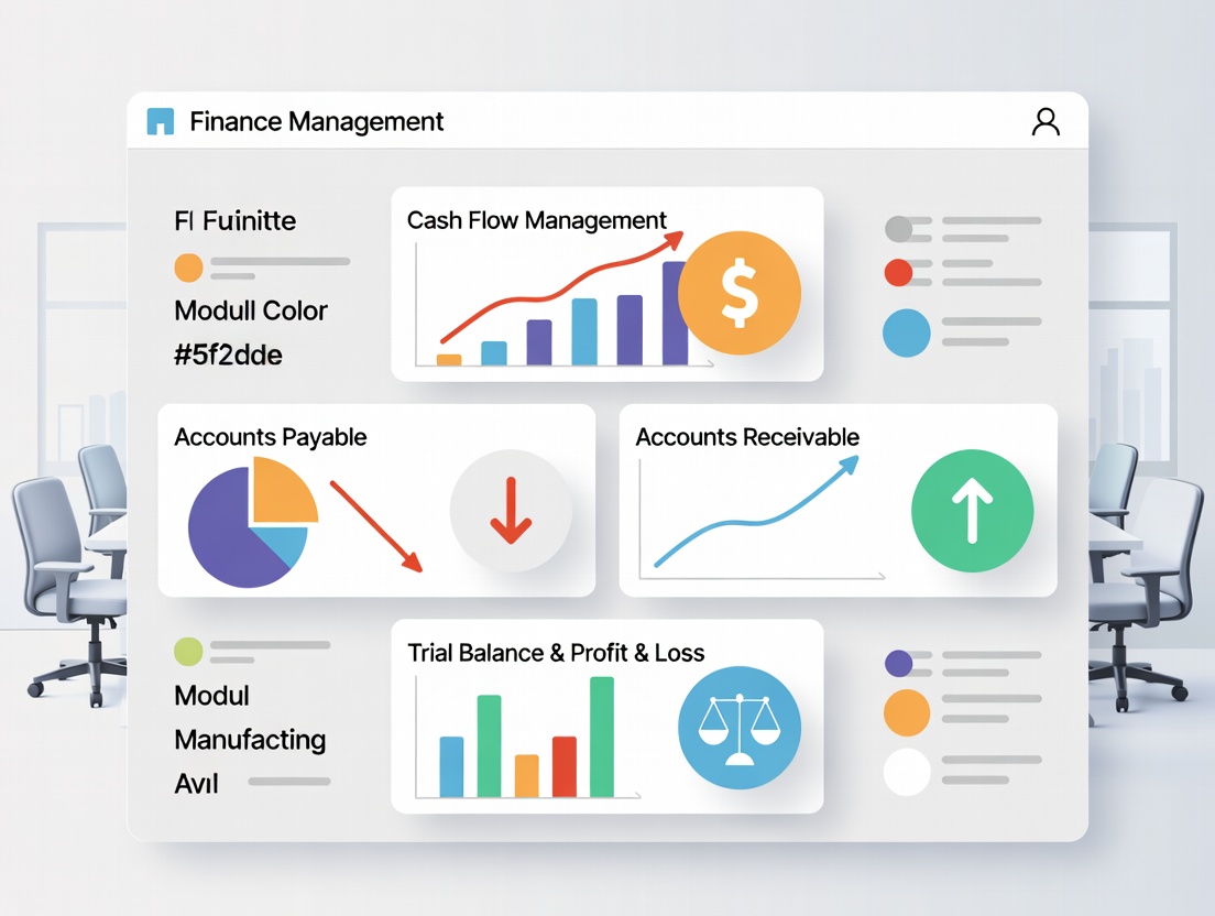 Managing finances in furniture manufacturing includes cash flow, supplier payments, payroll, and customer receivables. Separate accounting systems often cause errors and delays.