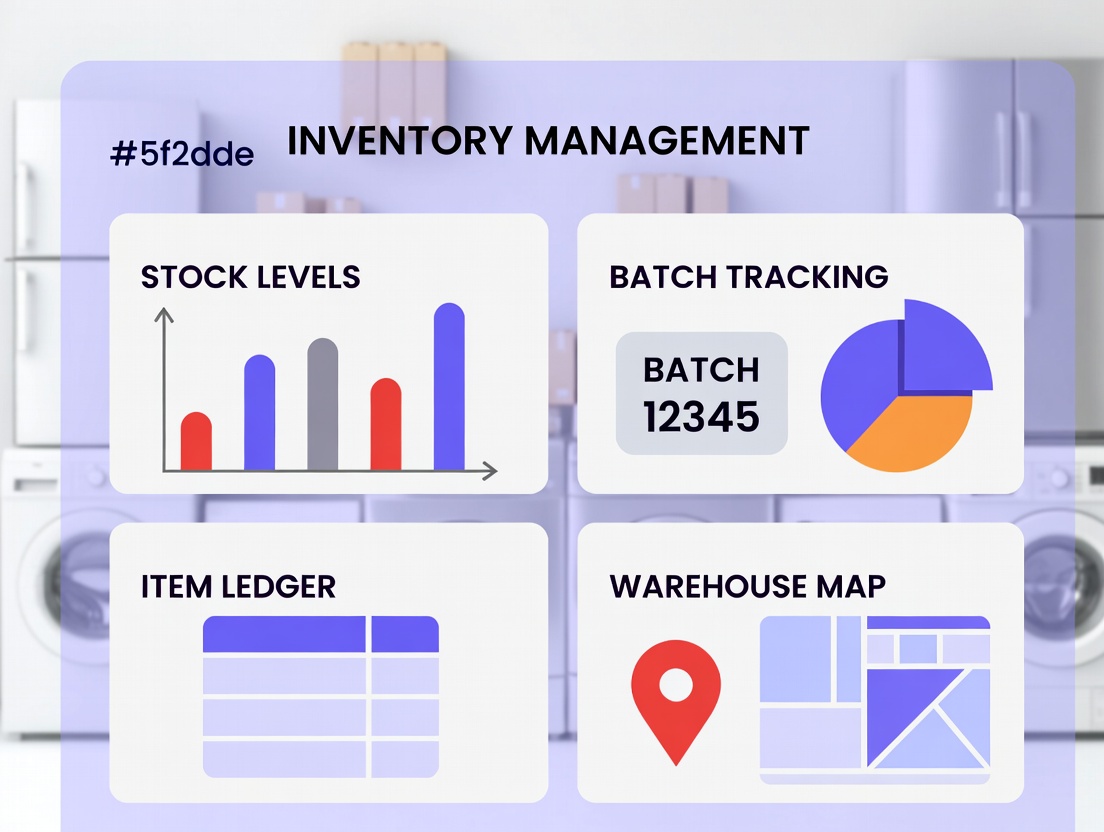 Home appliance stores deal with diverse products that vary in size, model, warranty, and batch. Manual inventory management often causes stock mismatches, missed warranties, and inaccurate product valuation. This module allows detailed product charting, stock adjustments, stock transfers, and management of bundled offers or packages. Real-time stock monitoring and alerts ensure that popular appliances are always available for customers.