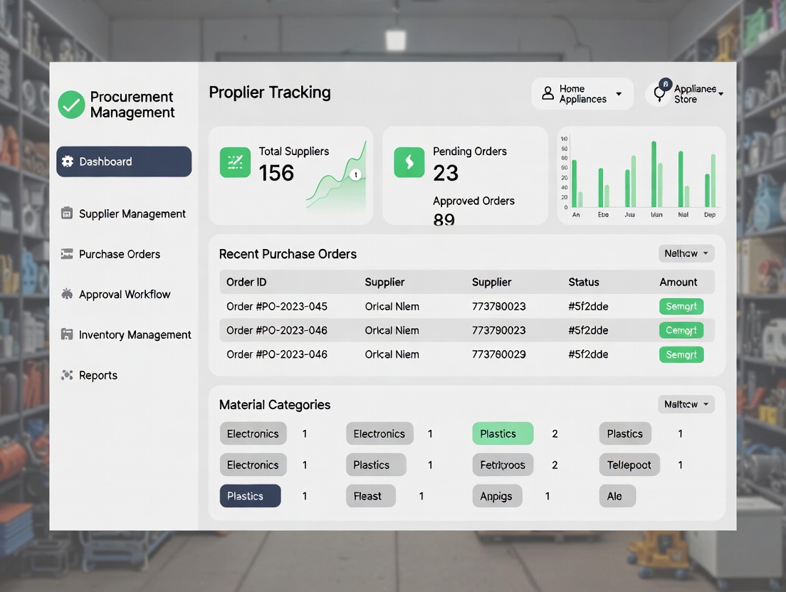 Procurement in home appliance stores involves managing multiple brands, models, warranty types, and supplier schedules. Manual procurement often leads to stock imbalances, delayed deliveries, and difficulty tracking supplier performance. This module organizes supplier data, purchase orders, invoices, and purchase returns efficiently. It helps plan inventory based on demand, track pending orders, and monitor supplier payments in real time.