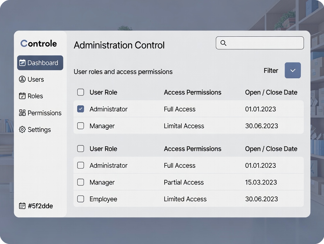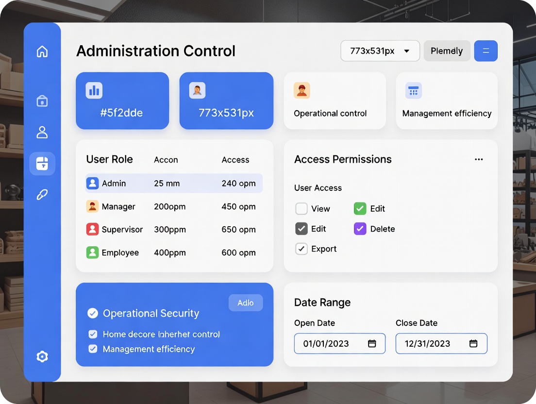 Multiple staff managing high-value décor items need controlled access to prevent unauthorized changes in pricing, stock, or financial records. This module allows role-based access, user management, transaction date control, and software configuration. The open/close date feature ensures accounting discipline and prevents backdated edits, maintaining secure operations.