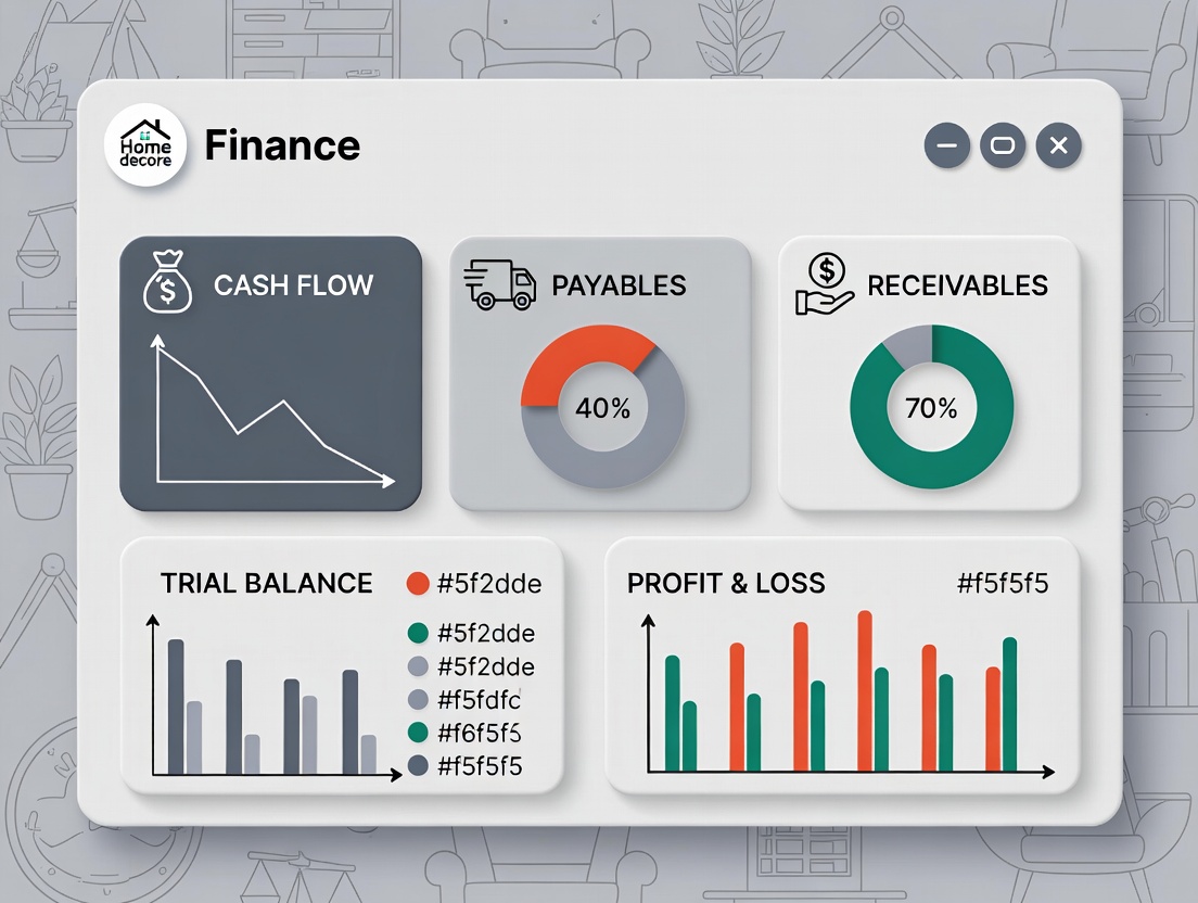 Managing finances in home décor stores requires precise handling of cash flow, supplier payments, and customer credits. Using separate accounting systems often leads to errors and delays. This module integrates full accounting features within the software, including instant financial statements, trial balance, profit & loss sheet, balance sheet, and aging reports for customers and suppliers. This ensures accurate financial management and improved business decisions.